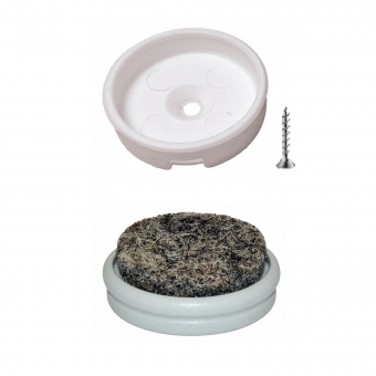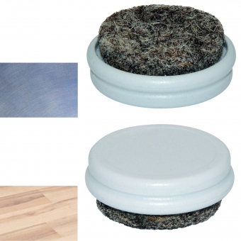 Ein Basisteil aus hochwertigem Kunststoff wird 1 x am Möbel befestigt und dient als Aufnahme für den wendbaren Möbelgleiter mit zwei Gleitflächen für zweifachem Schutz von robusten, weichen Böden und empfindlichen, harten Böden.