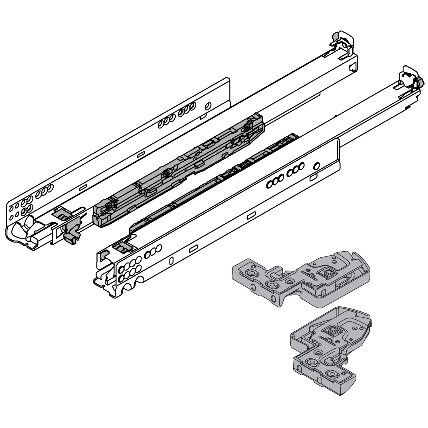 - Vollauszug / BLUMOTION S - durch Aufschieben der Tip-On Blumotion Einheit schaltet Weiche automatisch auf grifflose Bewegungstecnologie um