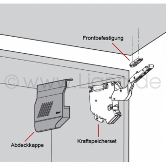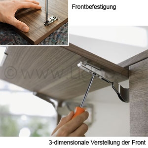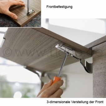 Weitere Vorteile: Einfache werkzeuglose Montage, 3-dimensionale Verstellung beider Fronten, Einfache stufenlose Einstellung der Kraftspeicher.