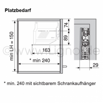- Zur Auswahl des Klappenbeschlags berechnen Sie bitte den Leistungsfaktor LF = Korpushöhe (mm) x Frontgewicht inkl. 2 x Griffgewicht (kg) - siehe Tabelle unter Downloads