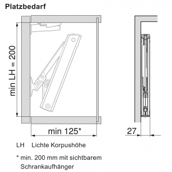 - für kleine Hochklappen in Hoch- und Oberschränken (Einbau z.B. über dem Dunstabzug oder im Spiegelschrank)