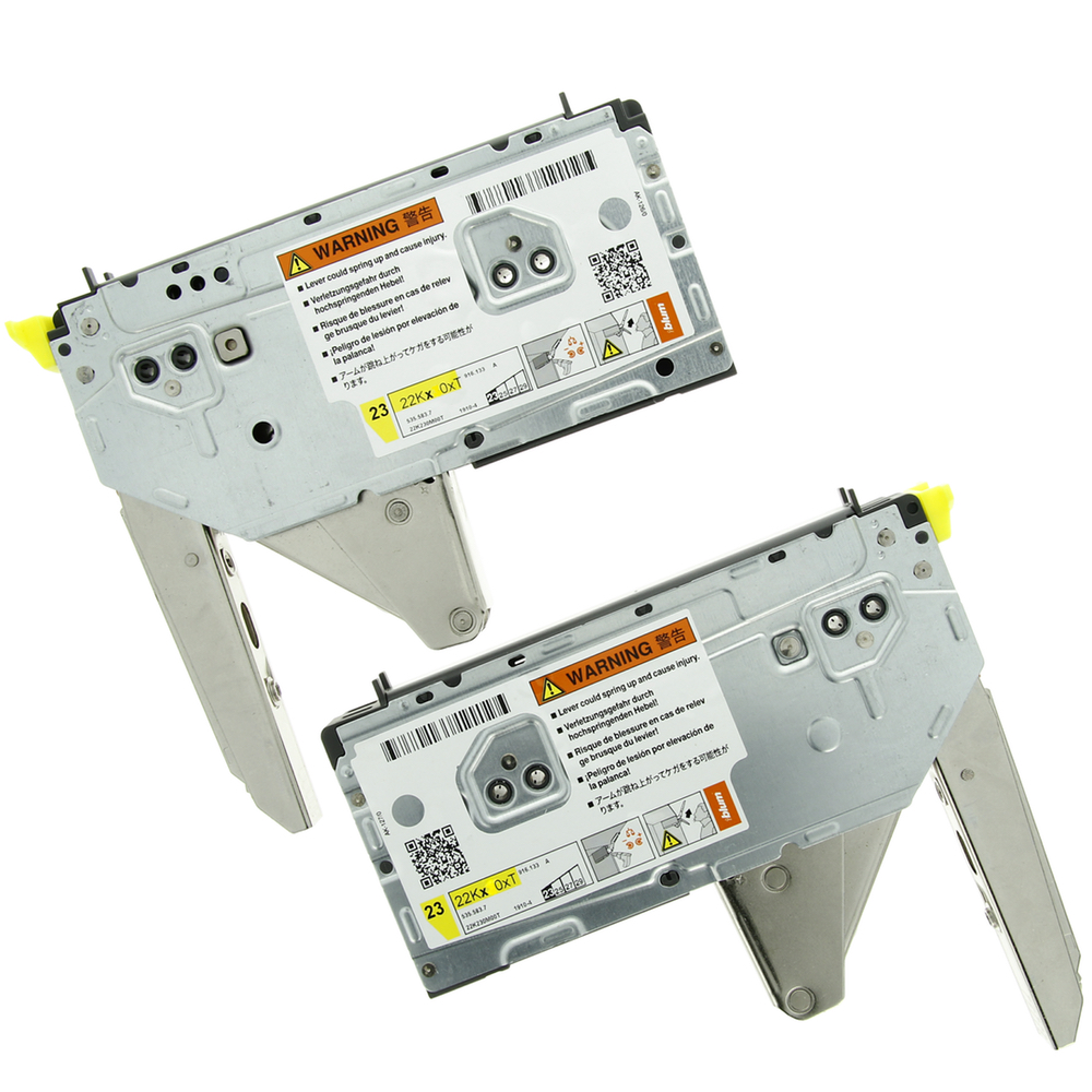 Die kompakte Hochklappe ist eine ideale Lösung für kleine Korpusse – z. B. im Ober- / Hochschrank und über dem Kühlschrank. Als Kraftpaket eignet sich der Beschlag aber auch für große Klappen. Der speziell auf TIP-ON abgestimmte Kraftspeicher AVENTOS-HK top ist für alle Klappengrößen geeignet. Korpushöhe 205-600 mm und für Korpusbreite bis 1800 mm.