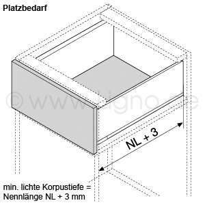 - min. lichte / innere Korpustiefe = Nennlänge + 3 mm