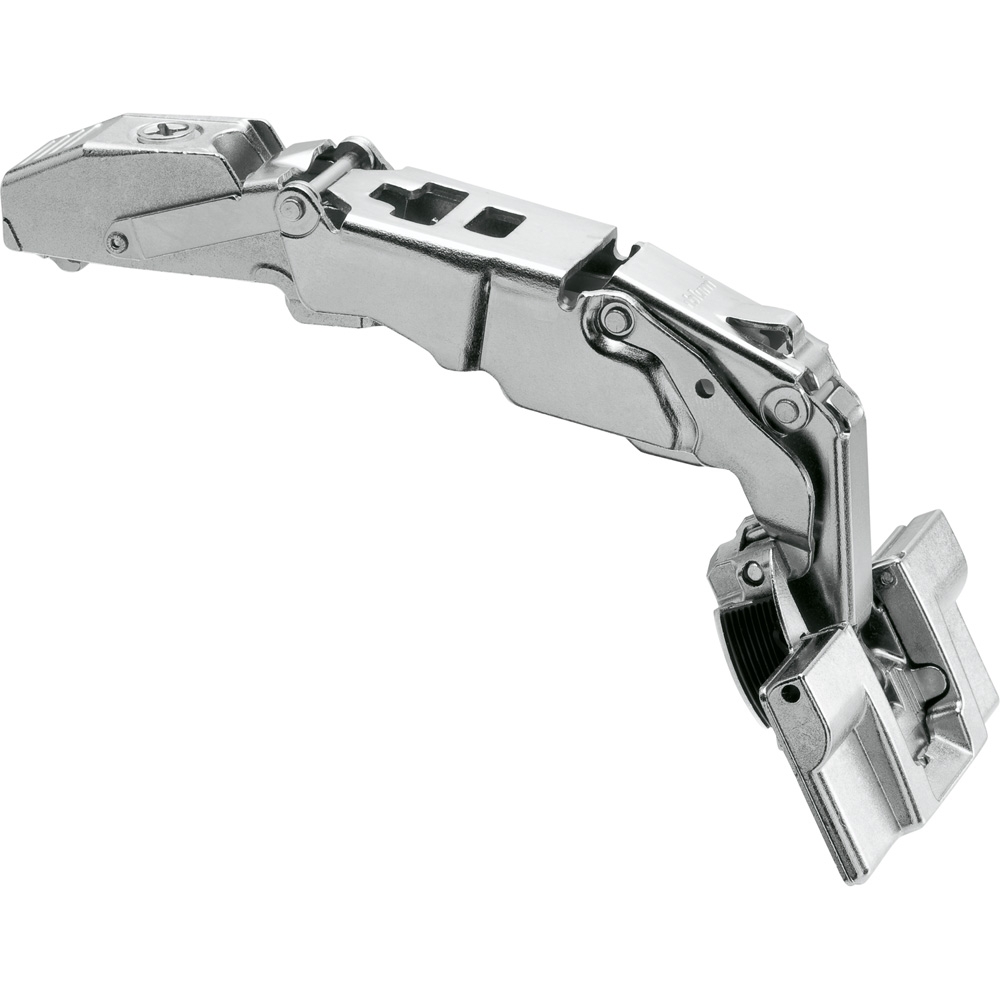 Vernickeltes Ganzmetallscharnier mit einem Öffnungswinkel von 155°.