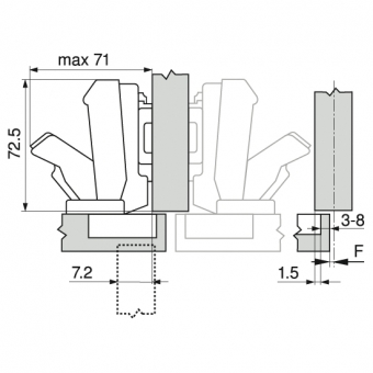 Das Topfscharnier wurde für Schränke mit Innenauszügen oder Tablarauszügen entwickelt.