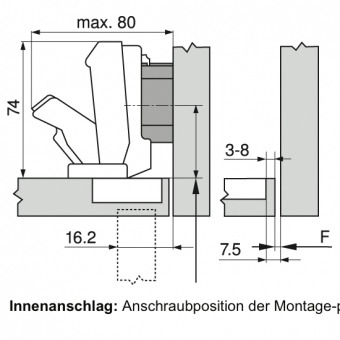 Das Einbohrmaß (der Topfabstand) beträgt 3-8 mm.
