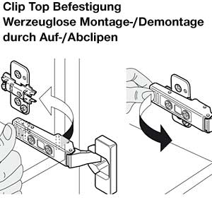 Werkzeuglose Montage und Demontage der Türe am Korpus