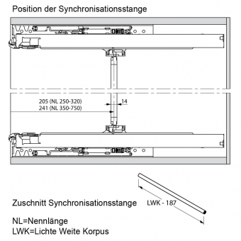 - erforderlicher Zuschnitt der Synchronisationsstange = LWK - 187 mm