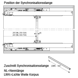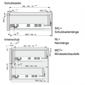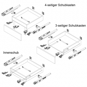 - 1 Paar Schubkastenführungen inklusive 2 x Rastkupplung (links / rechts) und 2 x Verstelladapter (links / rechts)