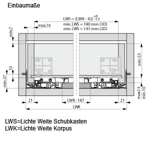 Die Ausrichtung der Front kann bei Dynapro über die 3D Verstellmöglichkeiten erfolgen (ermöglicht die Umstellung von vierseitigen auf dreiseitige Schubkästen).