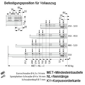 - 40 kg Tragkraft (bei NL 270-550 mm)