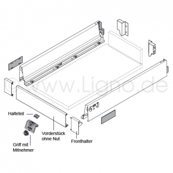 3-teiliges Frontbefestigung Set für Tandembox intivo Innenauszug Höhe M (83 mm) - bestehend aus: