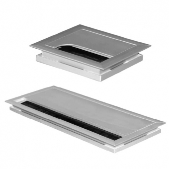 Exit Edge 13 - Diese Kabeldurchführung aus Aluminium mit flexibler Bürstendichtung und einer fixierten Abdeckung besticht durch das edle Design. Für den Einbau in Schreibtischplatten, Konferenztische, etc.