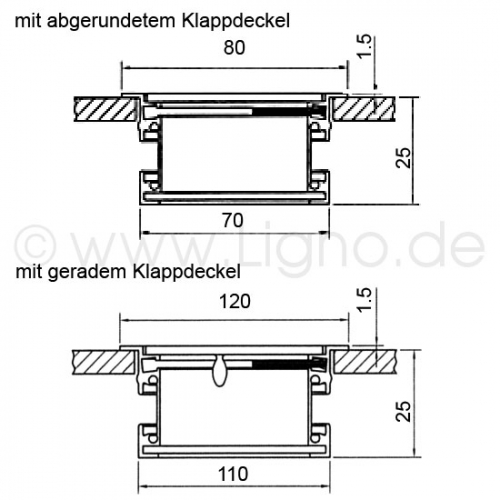 - mit flexibler Bürstendichtung und geradem/fixierten Klappdeckel
