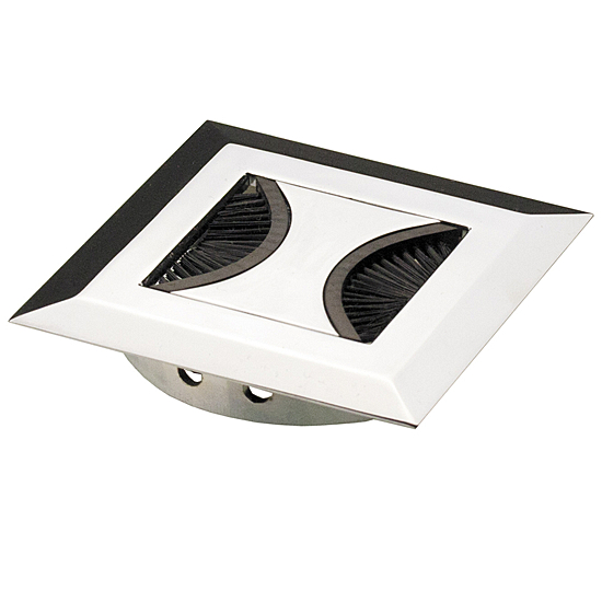 Kabeldurchlass in quadratischer Form aus Zinkdruckguss. Die halbrunden Öffnungen zur Kabeldurchführung sind mit Staubbürsten abgedeckt. Um größere Stecker durchzuführen, kann der Innendeckel problemlos herausgenommen werden.