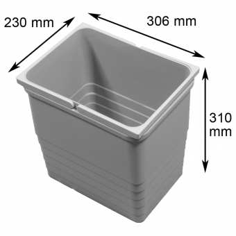5160.11 Kombinierbarer 17-Liter-Abfalleimer mit 2 schwenkbaren Tragegriffen in alu-grau, für stehenden/hängenden Einsatz (Trennsystem eins2vier/eins2fünf) - passend für alle Schubkastenfabrikate und Schranktypen - herausnehmbar - Höhe 310 mm