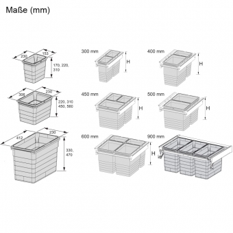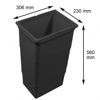 Kombinierbare Behältergrößen ermöglichen Individuallösungen für eine praktische und effektive Abfalltrennung. Die dunkelgrauen Kunststoffbehälter mit 2 schwenkbaren Tragegriffen gibt es in den Höhen 170-560 mm, das Fassungsvermögen beträgt 4,2-35 Liter.