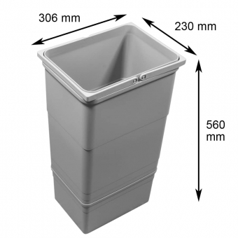 5179.11 Kombinierbarer 32-Liter-Abfalleimer mit 2 schwenkbaren Tragegriffen in alu-grau, für stehenden/hängenden Einsatz (Trennsystem eins2vier/eins2fünf) - passend für alle Schubkastenfabrikate und Schranktypen - herausnehmbar - Höhe 560 mm