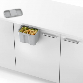 Der kompakte biobin Behälter mit einem Volumen von 4,2 Litern ist universell einsetzbar und in jeder Küche unterzubringen. Er kann in Türen verschiedener Stärken (16-22 mm) bzw. am Rand der Küchenfront unterhalb der Arbeitsplatte leicht eingehängt werden und ermöglicht eine ergonomische Entsorgung des Bio-Mülls schon während der Küchenarbeit.