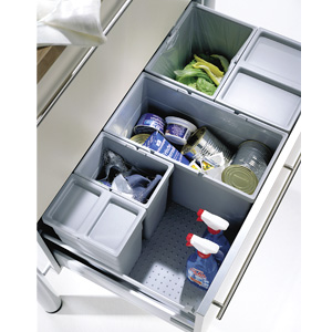 Das Abfallsammler-Set für 300 mm Schrankbreite und 500 mm Korpustiefe besteht aus: