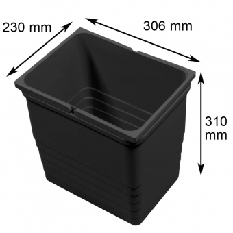 Kombinierbare Behältergrößen ermöglichen Individuallösungen für eine praktische und effektive Abfalltrennung. Die dunkelgrauen Kunststoffbehälter mit 2 schwenkbaren Tragegriffen gibt es in den Höhen 170-560 mm, das Fassungsvermögen beträgt 4,2-35 Liter.