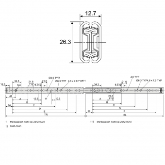 Werkstoff Teleskopauszug Schienenelemente: kaltgewalzter Stahl