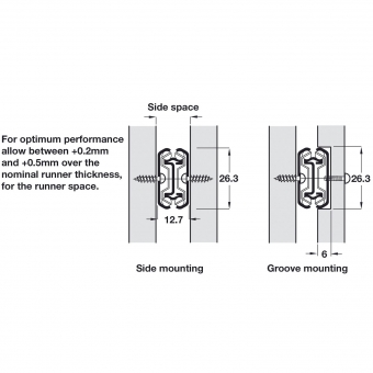 Accuride Kugelkäfig Vollauszüge Teleskopschienen funktionieren nicht optimal, wenn sie zusammengedrückt werden. Die Einbaubreite der Schubladenschienen sollte daher um 0,2 bis 0,5 mm über der angegebenen Schienenbreite liegen.