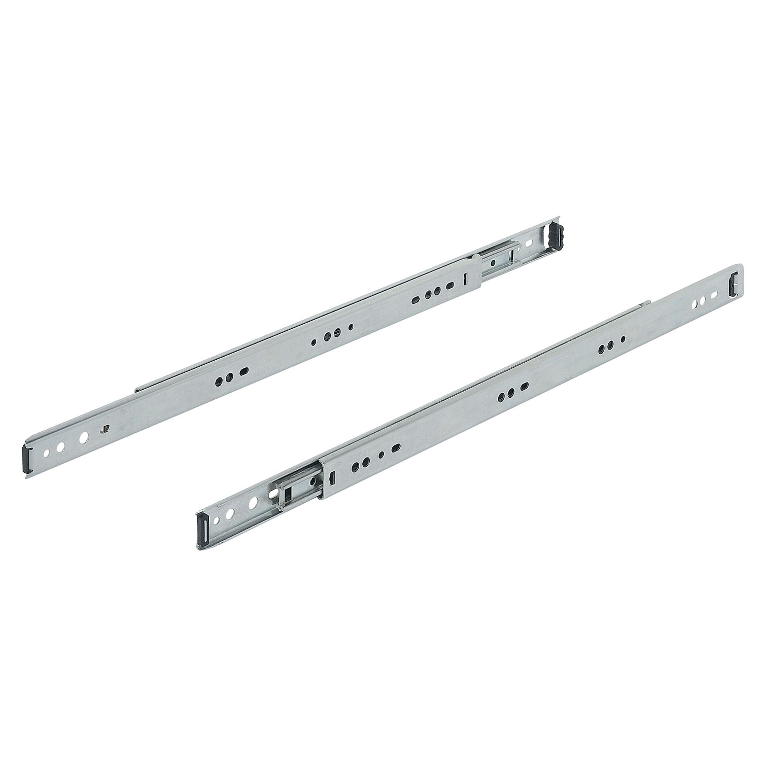 Die Lastwerte des Kugelvollauszugs gelten bei mittig aufliegender Last für Schienen, bei einem Vollauszug von 450 mm.