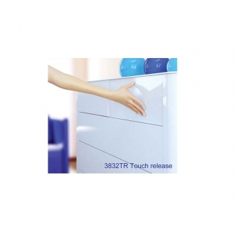 Der Kugelkäfig-Vollauszug ist barrierefrei - die Touch Release-Schienen werden durch sanftes Drücken auf die Schubladenfront geöffnet - es sind keine Griffe ode Knöpfe erforderlich.