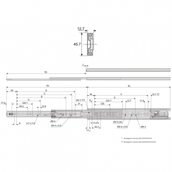 - Einbaulängen: 300-700 mm (Auszugslängen: 305-711 mm)