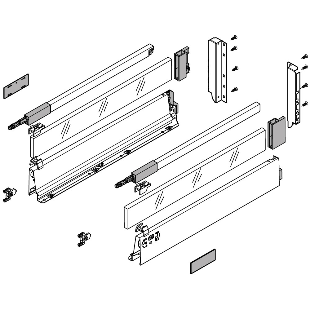 - M-Zargen (li/re) inkl. Abdeckkappen - Rückwandhalter (li/re) - Frontbefestigung (Schraubv.) - Längsreling (li/re) - Hateteile-Set - 2 x Klarglas-Einschub