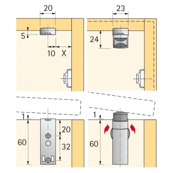 Mass X = Z + Distanz Montageplatte + Scharnierkröpfung