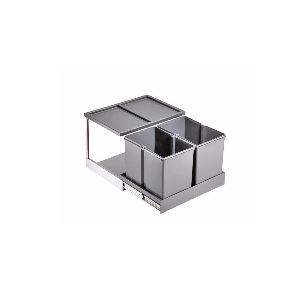 Der Automatic Shorty mit einem Fassungsvermögen von 30 Litern ist für eine Unterschrankbreite ab 500 mm geeignet. Er besteht aus einem Gestell, 2 Eimern,Deckel und Einsätzen aus anthrazitfarbenem Kunststoff.