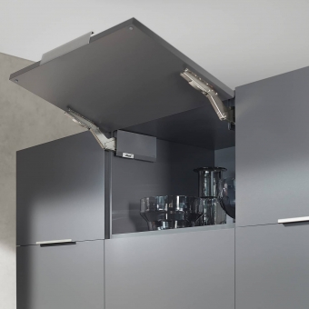 Alle Aventos HK Klappenbeschläge schließen sanft und leise, dank BLUMOTION Dämpfung.
