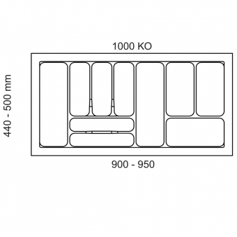 KOMBI Besteckeinsätze, aus hochwertigem und leicht zu reinigendem Kunststoff, bieten eine übersichtliche und raumsparende Einteilung.