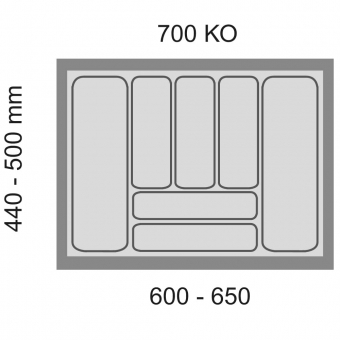 KOMBI Besteckeinsatz, aus hochwertigem und leicht zu reinigendem Kunststoff, bieten eine übersichtliche und raumsparende Einteilung.