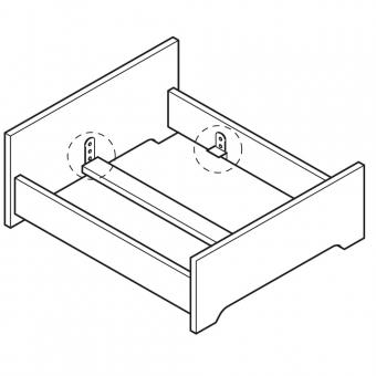- Bei Doppelbetten - mit 35 mm dicken Mittelbalken - müssen die Einhängeplatten am Kopf- und Fußteil gegenüber den Bettseiten um 5 mm höher angeschraubt werden (Auflageflächen von Winkel + Mittelbalken in einer Ebene).