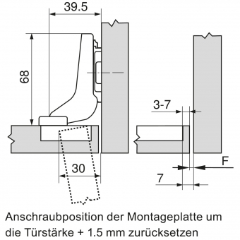 - Bohrtiefe 13 mm (bisher 12,8mm bei INSERTA Topfbefestigung)- Einbohrmaß (Topfabstand) neu 3 - 7 mm (bisher 3 - 6 mm)