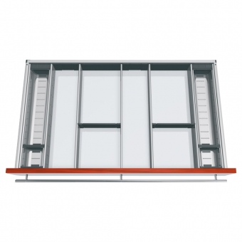 Die Inneneinteilungssysteme von ORGA-LINE sind Sets, die den gesamten Schubkasten ausfüllen. Sie nutzen den Stauraum optimal und sind exakt auf die unterschiedlichen Staugüter abgestimmt. Für hohe Staugüter im Frontauszug werden Längs- und Querteiler, für niedrige Staugüter werden Schalen und Facheinteilungen eingesetzt.
