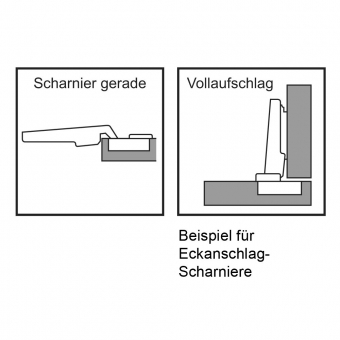 - an der Scharnierseite auf gerade Scharniere der Firma Blum für Eckanschlag
