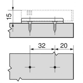 Montage mit Spanplattenschrauben Ø 3.5 oder Ø 4 mm - BLUMOTION Dämpfer muss zusätzlich bestellt werden