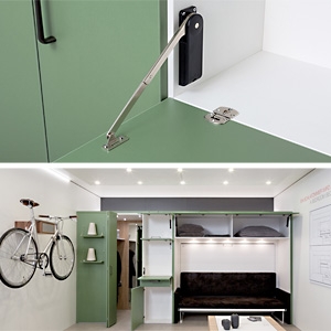 Der Beschlag benötigt nur wenig Platz im Korpus, begrenzt die Öffnung der Front sicher bei 90° und schließt sie nach leichtem Antippen selbsttätig und gedämpft.