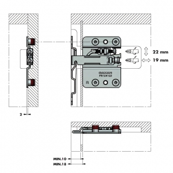 Verstellmöglichkeit: Höhe 22 mm, Tiefe 19 mm