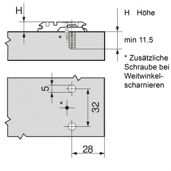 Achtung: 28 mm Bohrabstand (z.B. Ikea ) , Kante <-> Mitte Bohrloch, statt 37 mm Bohrabstand.