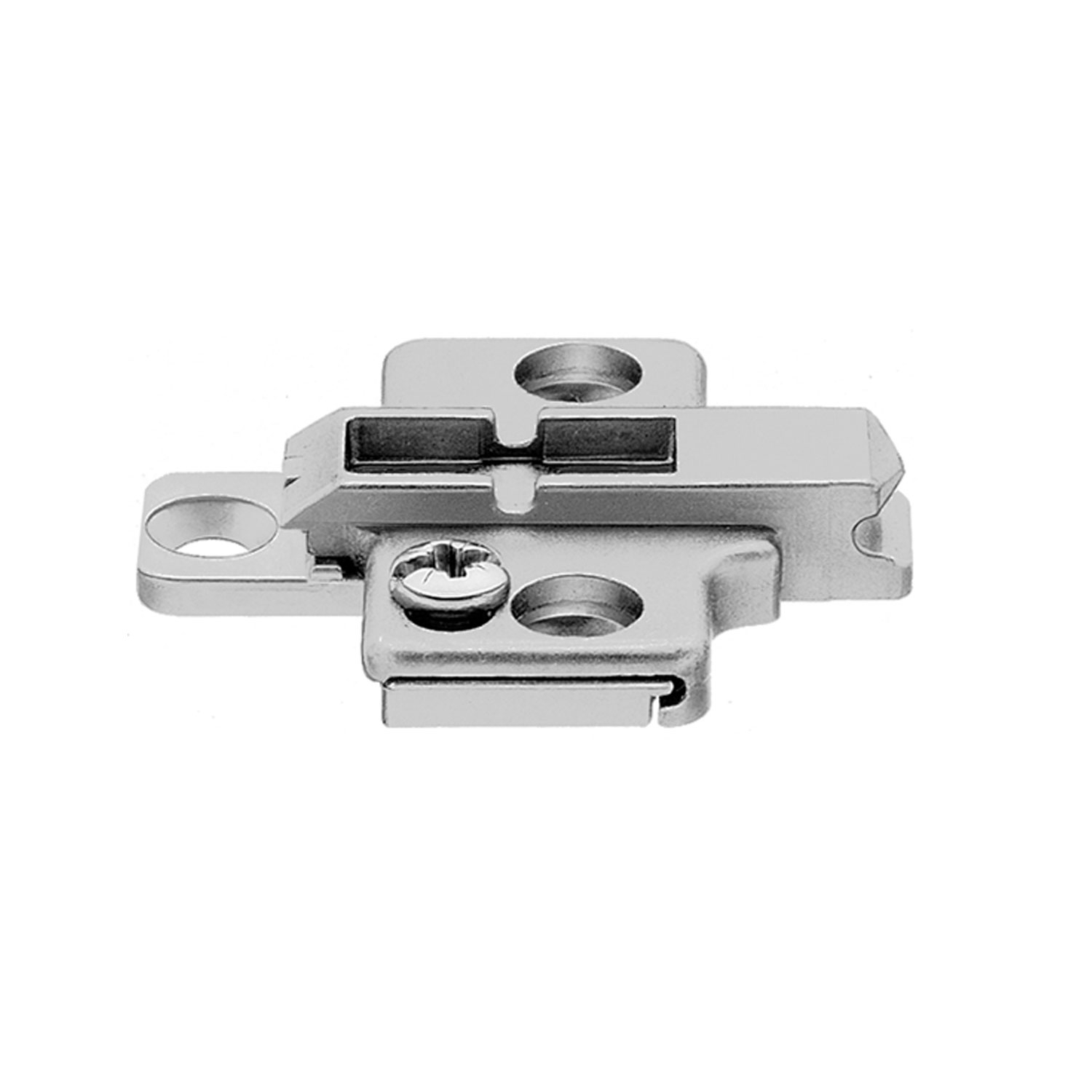 Material: Zink vernickelt Montage mit Spanplattenschrauben Ø 3.5 mm und ø 4 mm Mit Höhenverstellung ± 2 mm Empfohlene Schraubenlänge 17 mm