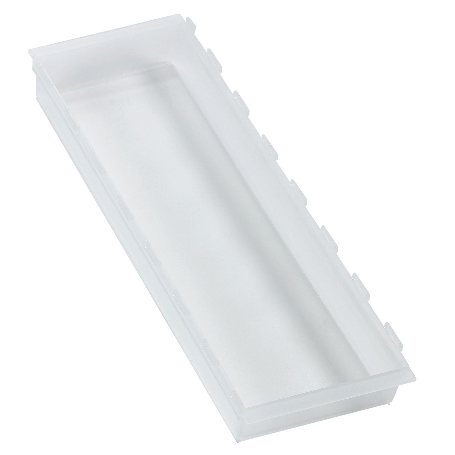 Die einzelnen, transparenten Kunststoff-Schalen mit einer Höhe von 55 mm werden durch ein Aluminiumprofil so miteinander verbunden, dass sie zu einer Einheit werden.