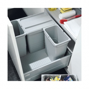 Dieses System ermöglicht den Einsatz der Behälter hängend, integriert in Blum TANDEMBOX. Komplett vormontierte Rahmenkonstruktionen erlauben problemlosen Einbau. Passend für 310 / 330 mm hohe Behälter (8 und 17 Liter / 25 Liter) und Großraumbehälter 450 / 470 mm hoch (26 Liter / 35 Liter) sowie 560 mm hoch (32 Liter). Hängerahmen für alle Schubkastenfabrikate, erhältlich für 300-600 mm Breite.