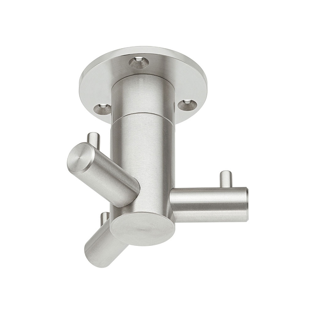 Drehbarer Deckenhaken für 3 Kleiderbügel - matt gebürstetes Edelstahl - Breite 90 mm - Scheibendurchmesser 60 mm - Höhe 75 mm