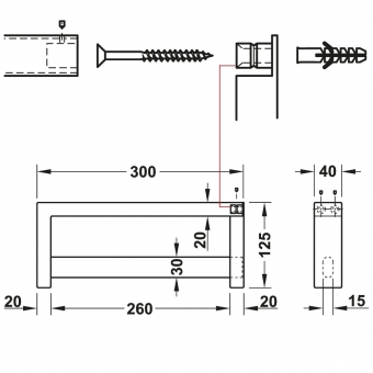 Gradlinige Wandgarderobe aus Edelstahl - 40 mm Breite - 125 mm Höhe - 300 mm Tiefe