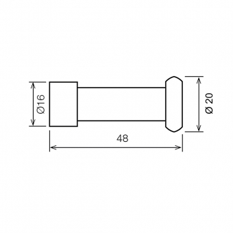 Edelstahl-Garderobenhalter 1-fach, Länge 48 mm - ø 16/12/20 mm - inkl. Befestigungsmaterial